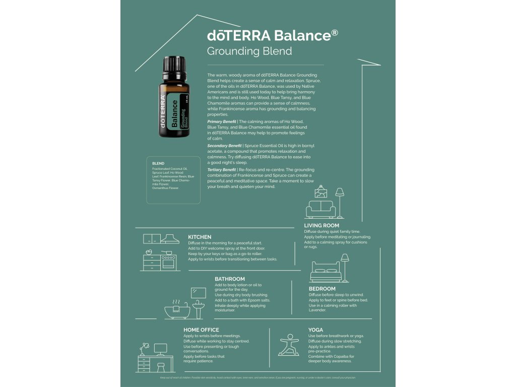 - A dōTERRA Balance keveréket olyan, az érzelmekre kedvező hatást gyakorló esszenciális olajok alkotják, amelyek együttes erővel járulnak hozzá a megnyugváshoz és a jó közérzethez.
