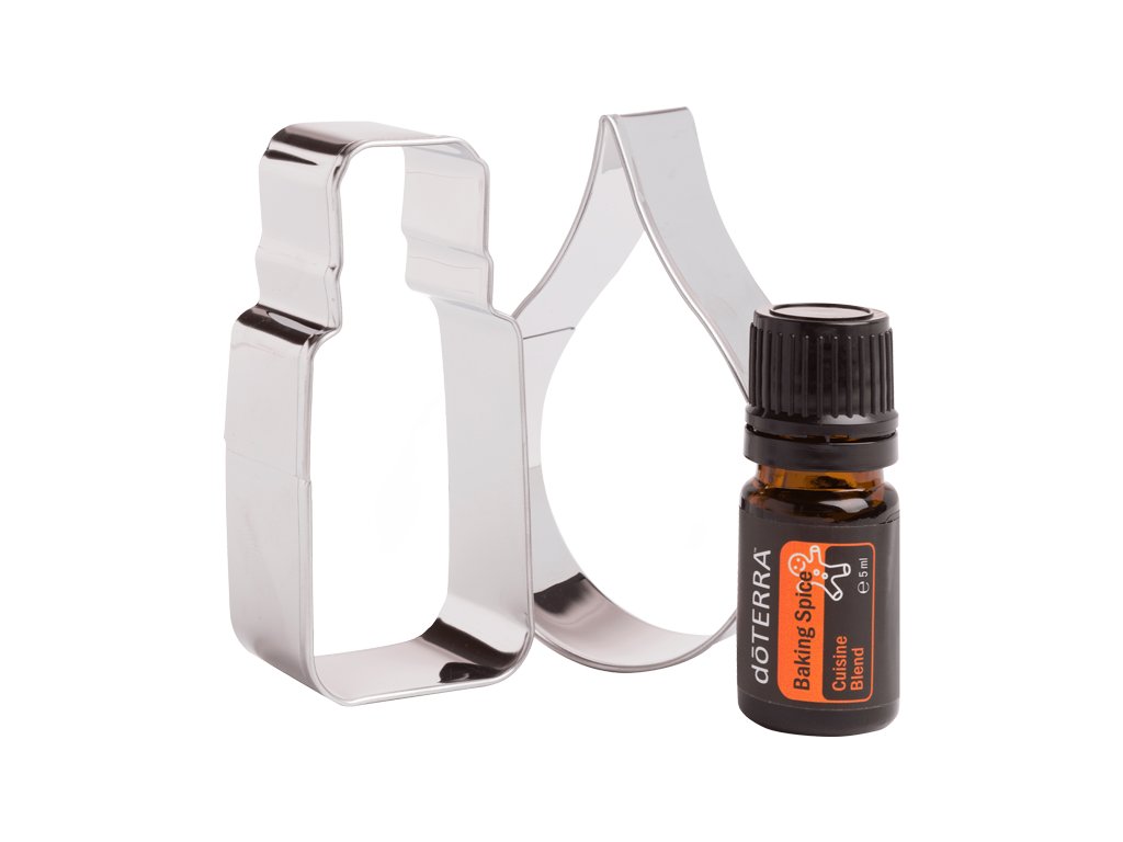 doTERRA Sütivágó formák: Vigyen némi játékosságot az ünnepekbe doTERRA esszenciális olajos üvegeket és olajcseppeket formázó sütikkel ennek a két fém sütivágó formának a segítségével.