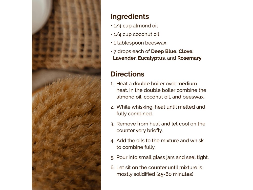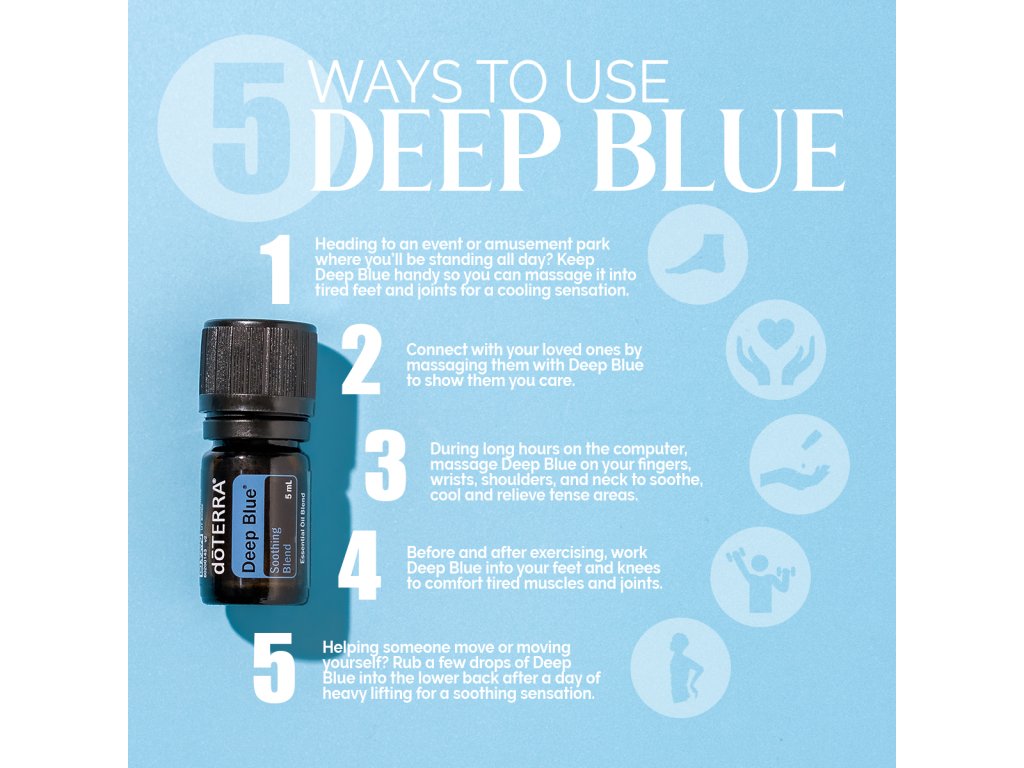 - Használja a Deep Blue keveréket masszázshoz, és élvezze enyhítő, hűsítő tulajdonságait.