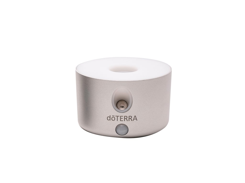 A doTERRA Lumist™ párologtató kicsi, víz nélkül működik, mozgásérzékelős, két üzemmóddal, akár 12 órán át üzemel, 10 m²-t lefed, USB-C töltés.