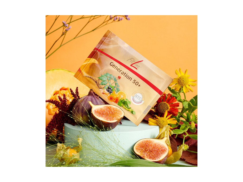 A FitLine Generation 50+, a világszerte jól ismert FitLine PowerCocktail kiegészítője, kifejezetten az aranykorúak speciális igényeinek kielégítésére készült. A FitLine Generation 50+ a FitLine PowerCocktail-lal kombinálva olyan tápanyagokat tartalmaz, amelyek támogatják az 50 év feletti szervezetet. Az Omega-3 zsírsavak, a lutein, az izoflavon, a Q10 koenzim és a ginzeng különleges összetételének köszönhetően ideális kiegészítője az agyműködés¹, a szívműködés² és a látás³ normál működésének fenntartásához. Íz: Fekete ribizli. ¹A FitLine PowerCocktail-lal kombinálva a C-vitamin hozzájárul az idegrendszer normál működéséhez, valamint a B6-vitamin (piridoxin), a B12-vitamin (kobalamin) és a C-vitamin hozzájárul a normál pszichológiai működéshez. ²FitLine PowerCocktail-lal kombinálva: A tiamin hozzájárul a szív normál működéséhez. ³FitLine PowerCocktail-lal kombinálva: a riboflavin és az A-vitamin hozzájárul a látás normál működésének fenntartásához. ⁴FitLine PowerCocktail-lal kombinálva: A B6-vitamin hozzájárul a hormonális aktivitás szabályozásához.