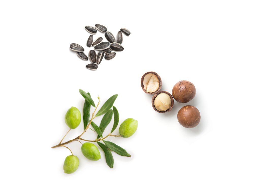 - Jól ismert a napraforgómag- és a makadámiadió-olajok kivételes hidratáló tulajdonsága, és az a képessége, hogy megtartják a bőr nedvességtartalmát.