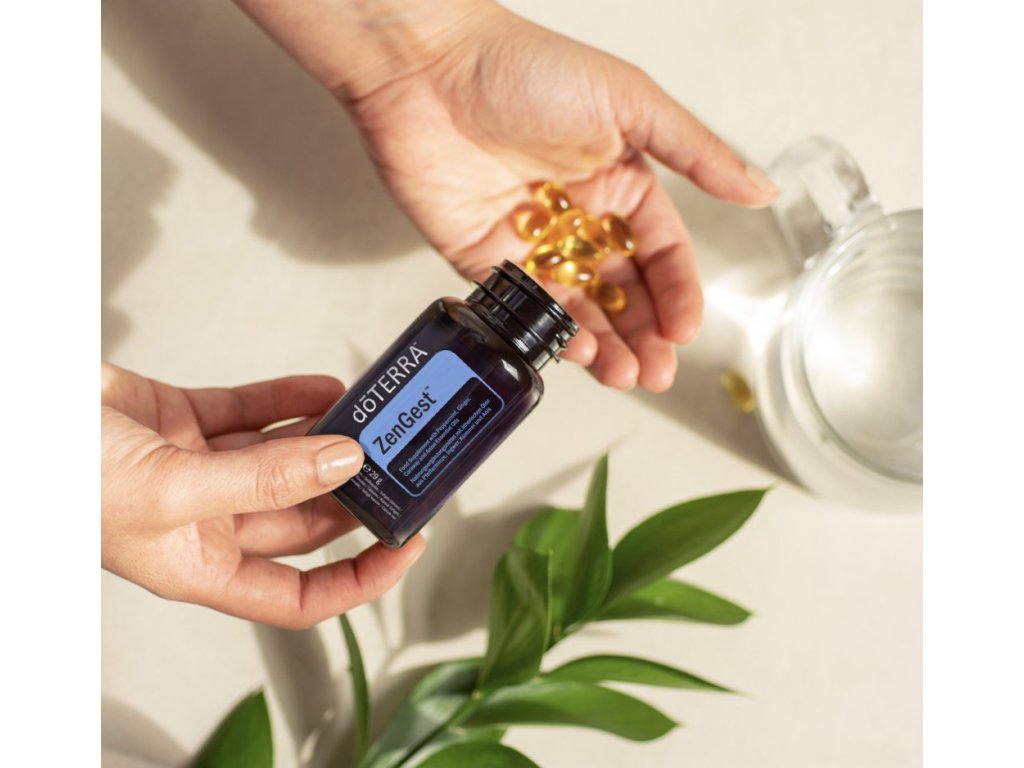 A doTERRA ZenGest lágyzselatin kapszula segít az emésztési zavarok enyhítésében, csökkenti a puffadást, támogatja az emésztőrendszer egészségét.