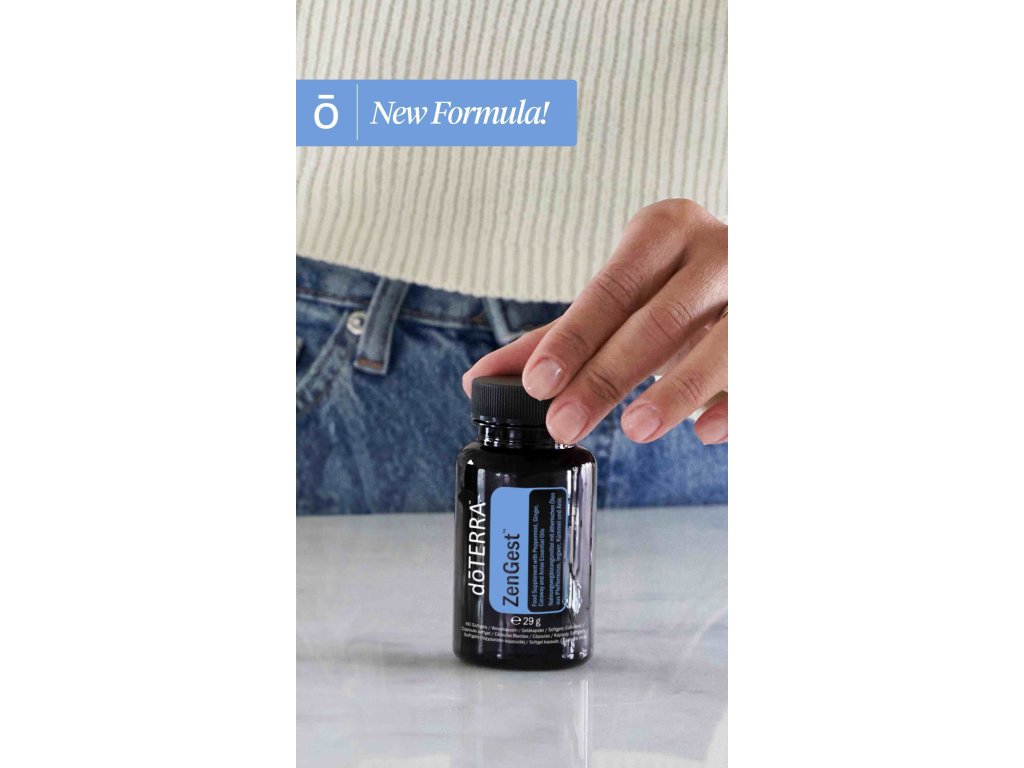 A dōTERRA ZenGest lágyzselatin kapszulákkal kényelmesen és egyszerűen élvezheti a dōTERRA ZenGest Támogató keverék jótékony hatásait. Minden vegetáriánus lágyzselatin kapszula 120 mg ismert és bizalommal alkalmazott ZenGest olajkeveréket tartalmaz. A ZenGest szabadalmazott keverék gyömbér, borsmenta, fűszerkömény, ánizs, koriander, tárkony és édeskömény egyedülálló kombinációját tartalmazza, hogy elősegítse ezáltal a nyugtató hatást. A ZenGest lágyzselatin kapszula nélkülözhetetlen a folyton úton lévő emberek és családok számára!