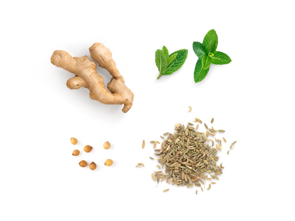 - Gyömbér, borsmenta, fűszerkömény, ánizs, koriandermag, tárkony és édeskömény egyedülálló kombinációját tartalmazza.